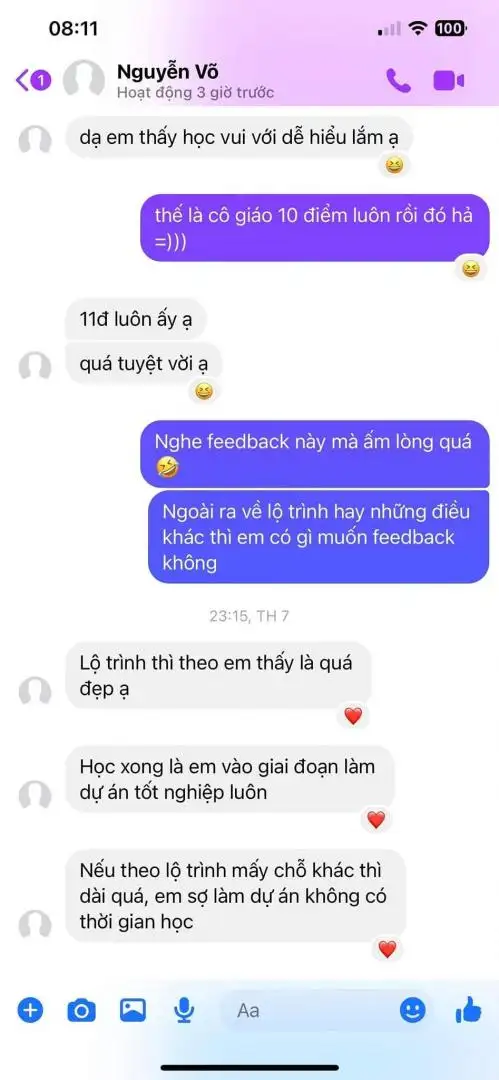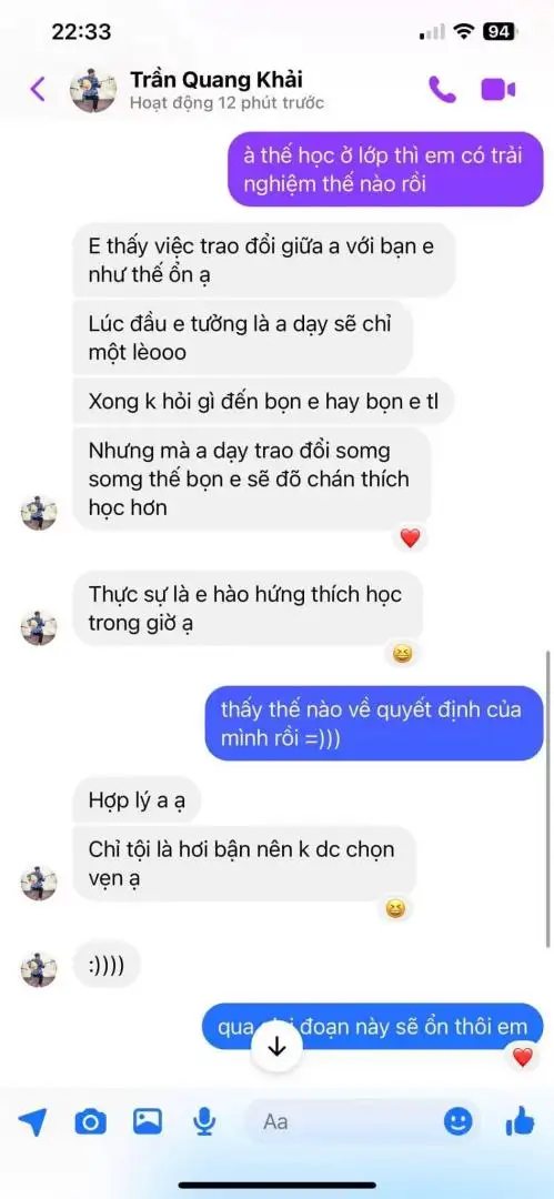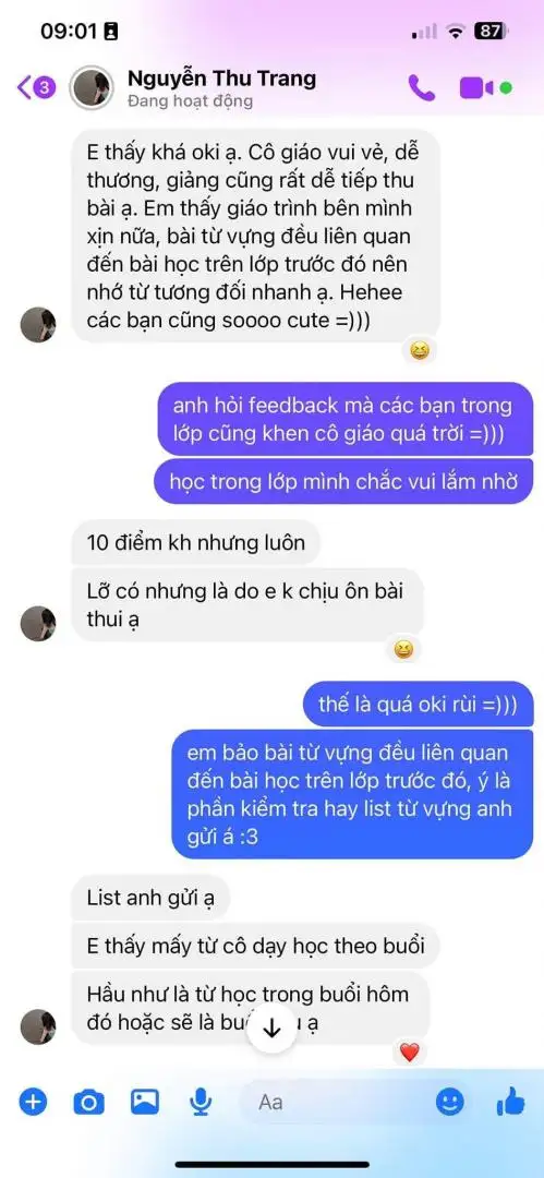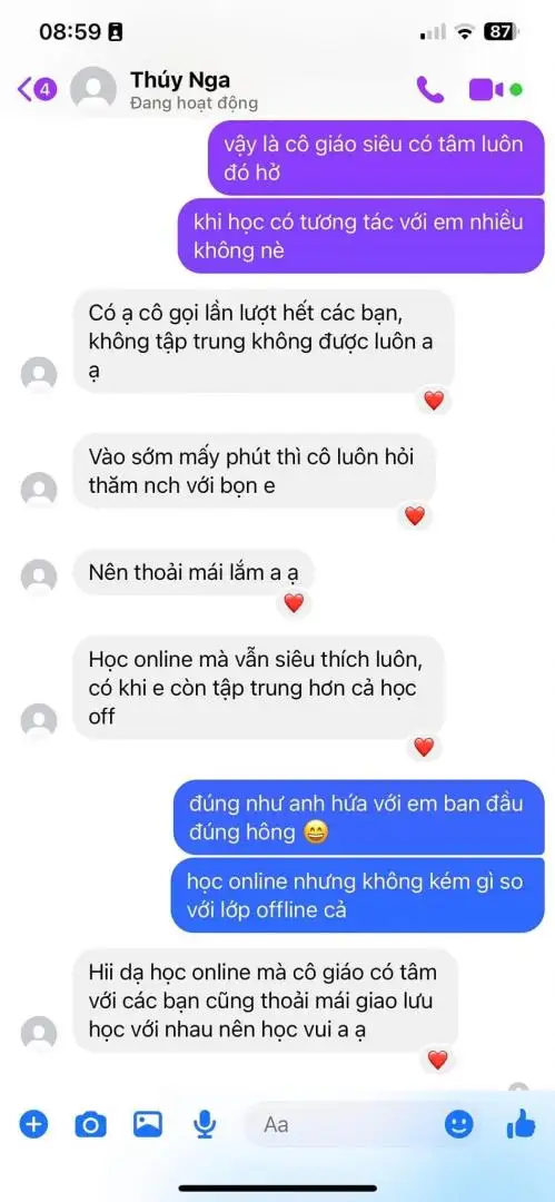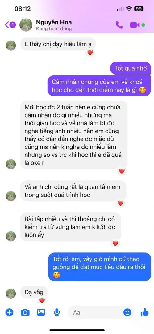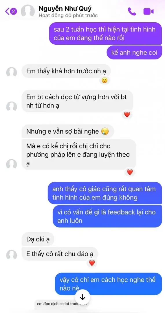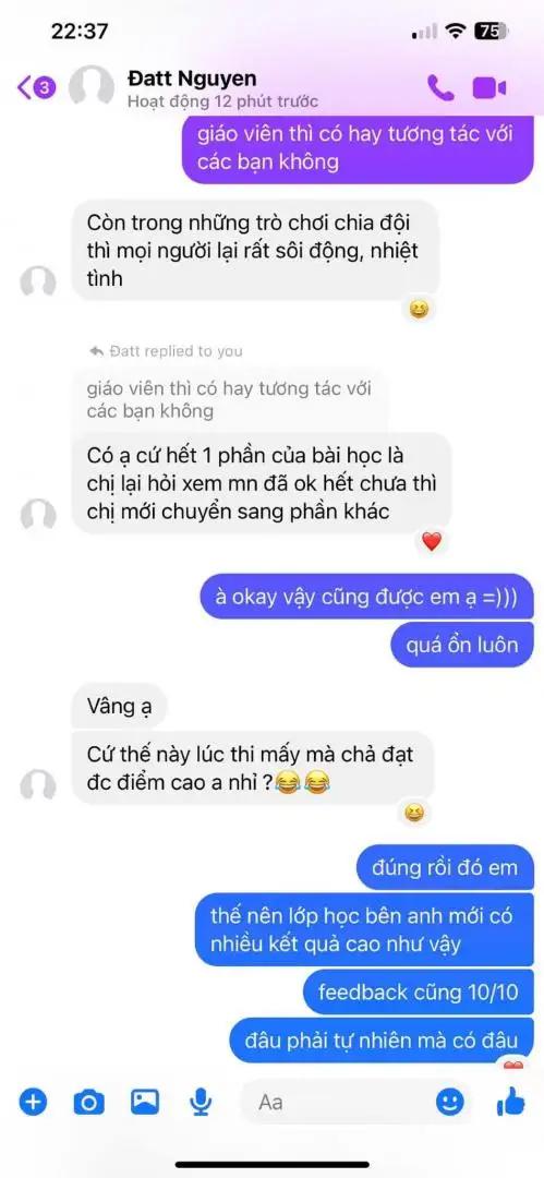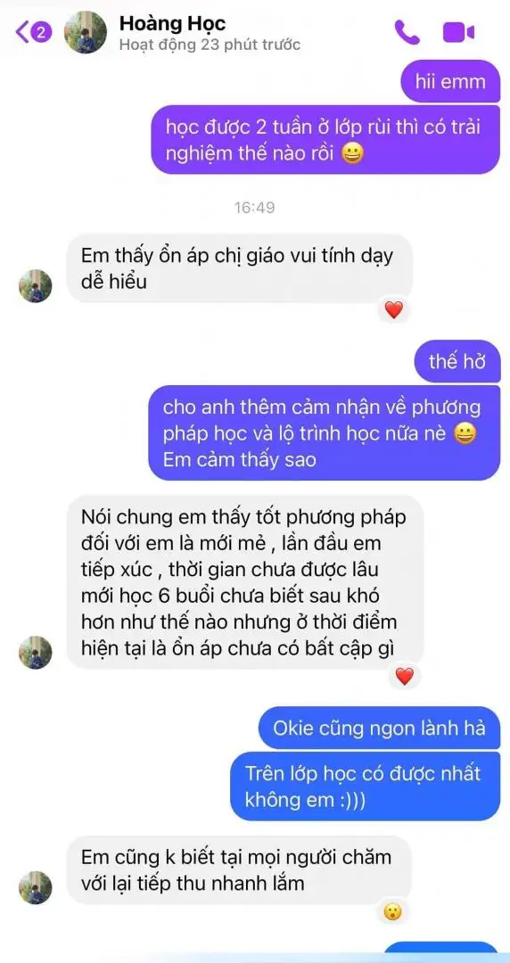 Học viên được quan tâm sát sao, tích cực tương tác, giải đáp thắc mắc, chữa bài tập đầy đủ, chi tiết