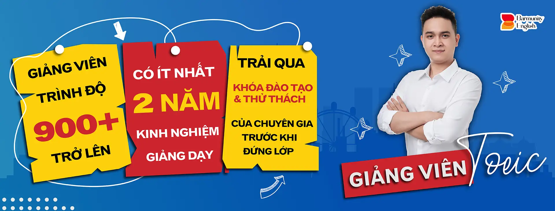 Đội ngũ giảng viên của chúng tôi sở hữu thành tích xuất sắc trong kỳ thi TOEIC, phải đạt 900 TOEIC trở lên. Tuy nhiên, điểm số chỉ là yêu cầu tối thiểu tại Barmunity.