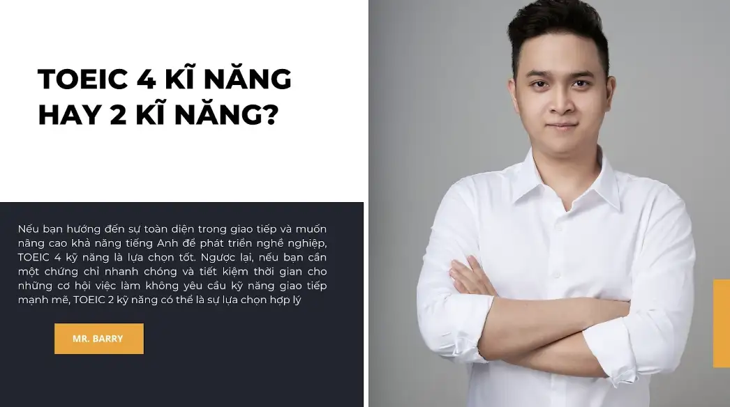 Trong bối cảnh ngày càng nhiều doanh nghiệp đánh giá ứng viên qua trình độ tiếng Anh, chứng chỉ TOEIC đã trở thành tiêu chuẩn quan trọng đối với nhiều người đang học và làm việc tại Việt Nam. Tuy nhiên, một câu hỏi đặt ra cho nhiều thí sinh là: Nên học TOEIC 4 kỹ năng hay 2 kỹ năng? Để trả lời cho câu hỏi này, chúng ta sẽ cùng xem xét những ưu và nhược điểm của từng lựa chọn.